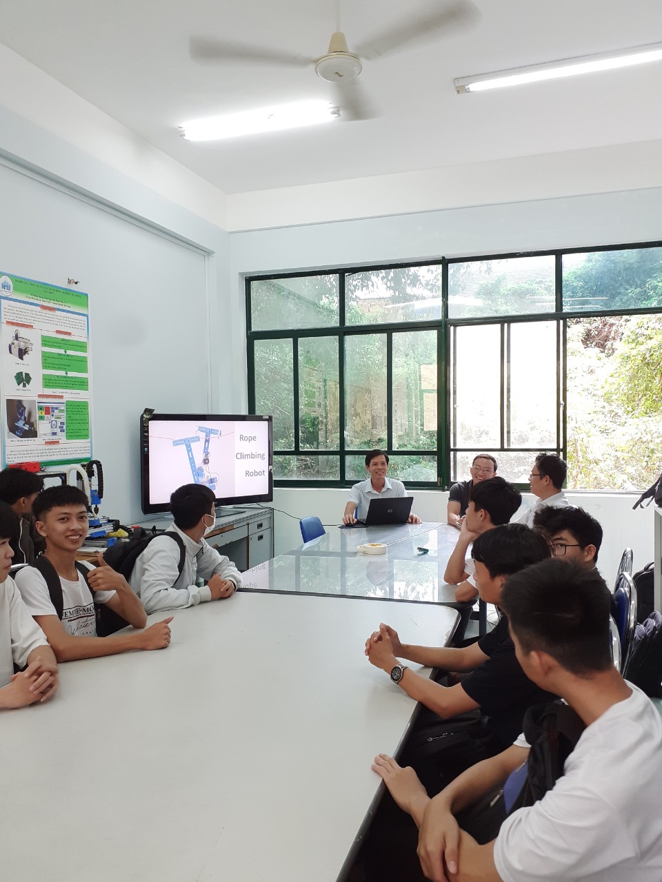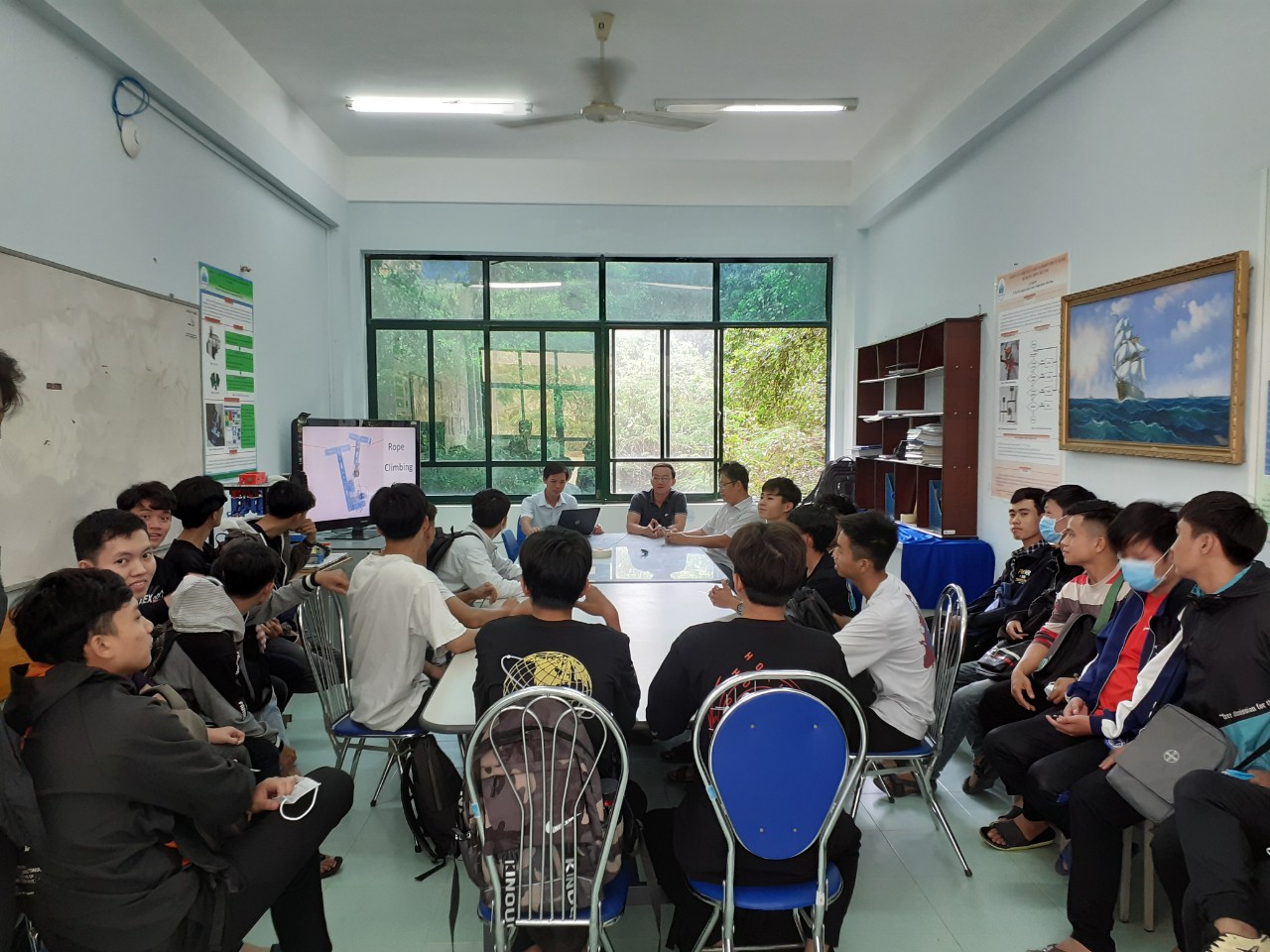 Nhằm chuẩn bị cho ngày hội kỹ thuật của khoa cơ khí trong tháng 5-2021, BM cơ điện tử đã tổ chức hướng dẫn các thông tin cơ bản về nội dung thi robot leo dây cho các nhóm sinh viên đăng ký nội dung thi robot leo dây.