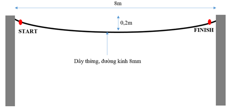 Robot phải vượt qua đoạn đường (dây) dài 8m, đường kính dây 8mm, thời gian được tính khi hoàn thành quãng đường này. Đội thắng là đội có thời gian hoàn thành quãng đường ít hơn.