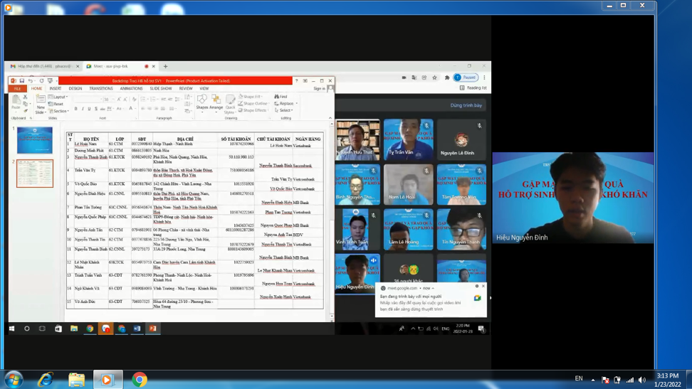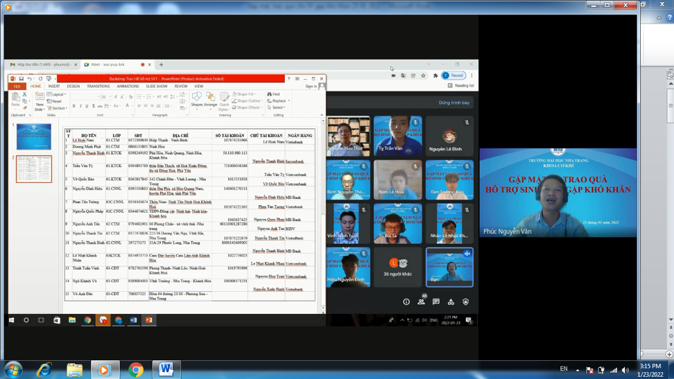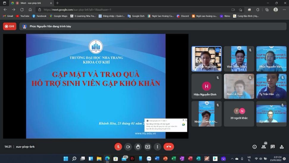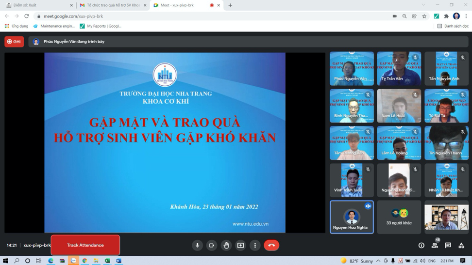 Được sự đồng ý của Lãnh đạo khoa, 14h00 ngày 23/01/2022 Công đoàn khoa phối hợp với ĐTN khoa Cơ khí tổ chức buổi “Gặp mặt và trao quà hỗ trợ cho các em Sinh viên có hoàn cảnh khó khăn”. Buổi gặp mặt đã được tổ chức trực tuyến với sự tham gia của Lãnh đạo khoa, các Thầy cô trong Công đoàn khoa, BCH ĐTN khoa, đại diện BCS, BCH chi đoàn các lớp và toàn thể các em sinh viên được nhận quà hỗ trợ đợt này.
