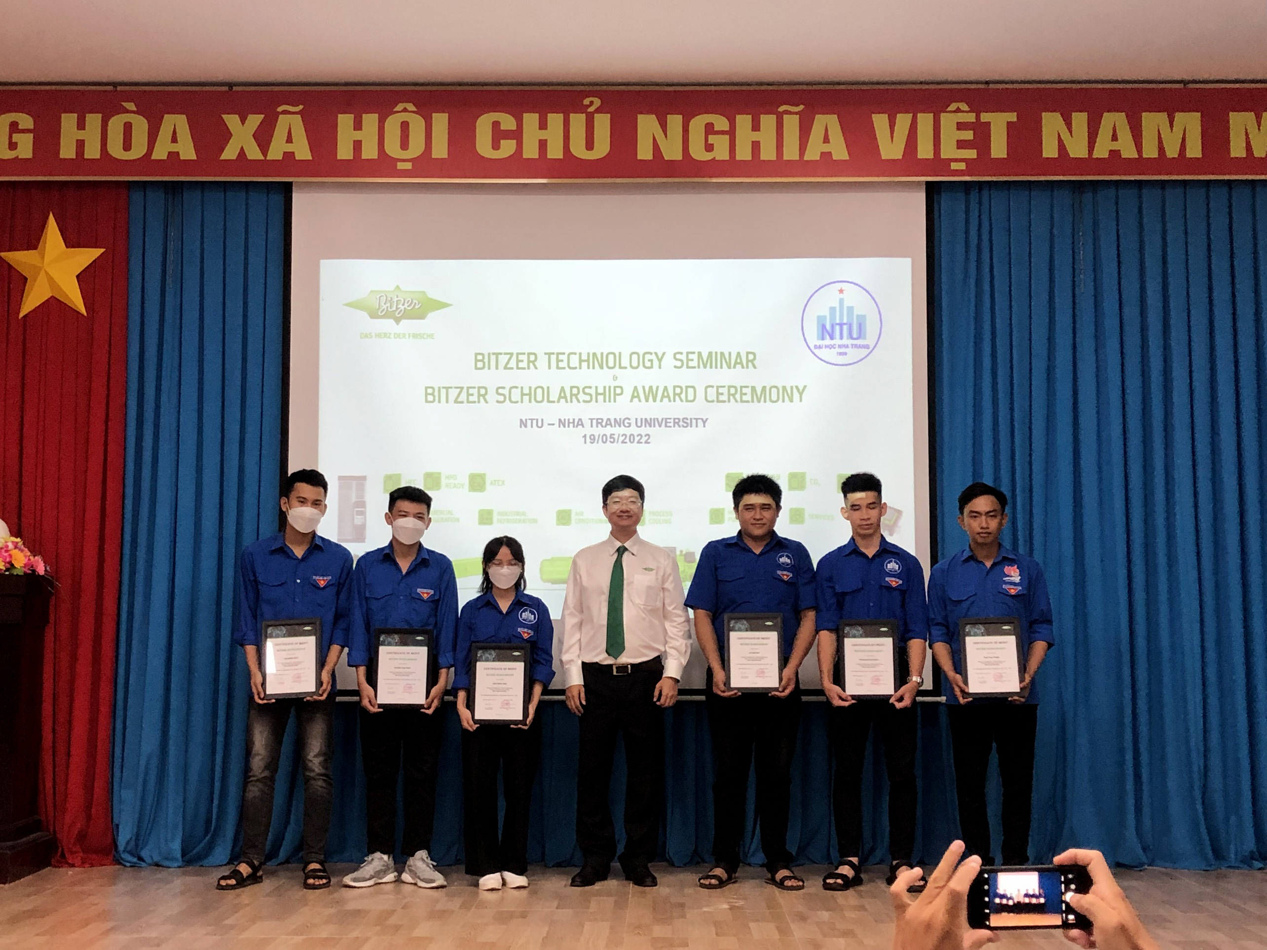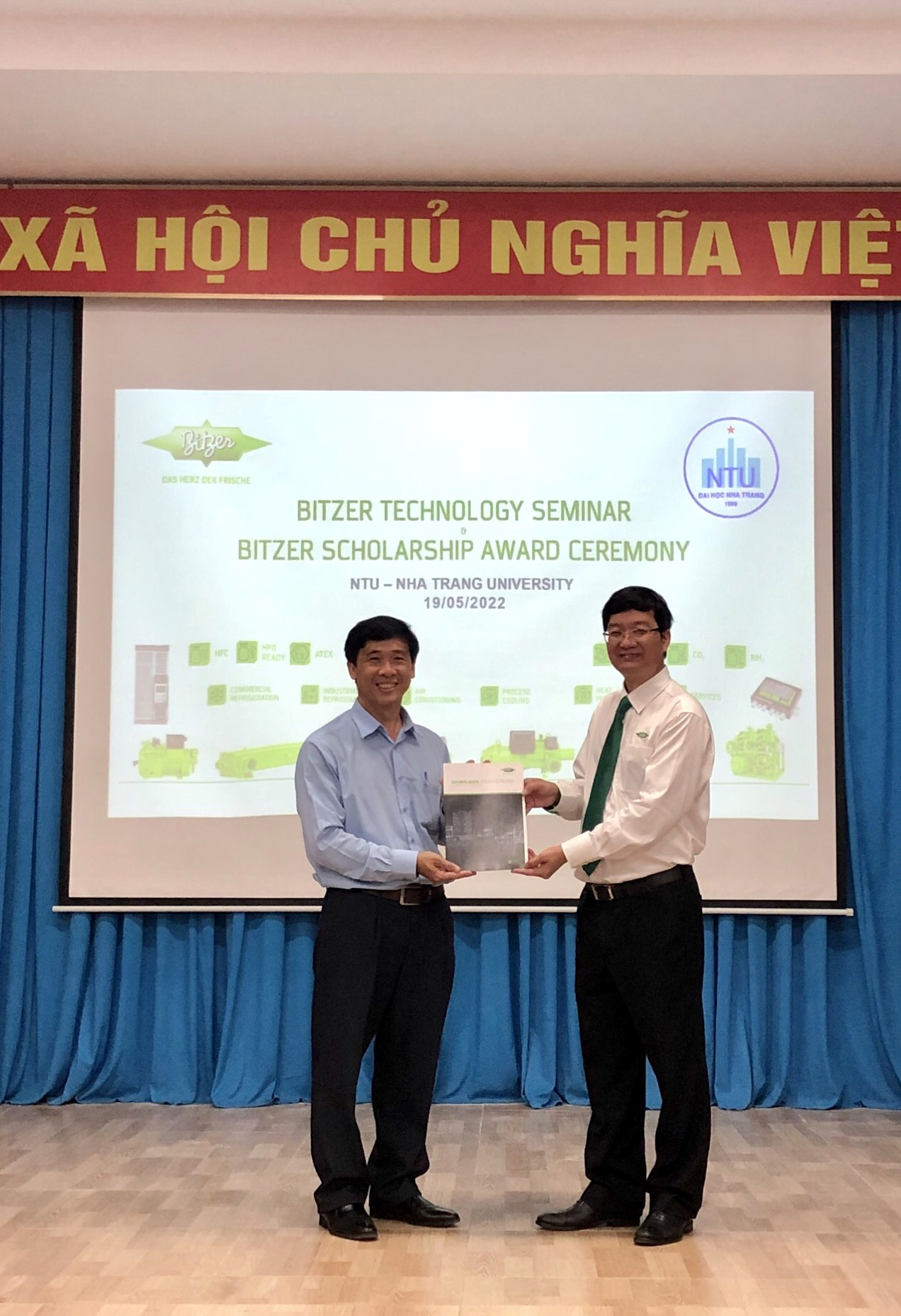 Ngày 19 tháng 5 năm 2022, Khoa Cơ khí phối hợp cùng với Công ty máy lạnh Bitzer tổ chức Lễ trao học bổng và Hội thảo về máy nén lạnh của hãng Bitzer. Đại diện công ty đã giới thiệu các dòng sản phẩm mới, công nghệ mới, kỹ thuật tiên tiến của hãng Bitzer. Công ty đã trao 06 suất học bổng (2.000.000 đồng/suất) cho sinh viên có kết quả học tập và rèn luyện tốt ngành Nhiệt lạnh, trao tài liệu chuyên ngành phục vụ giảng dạy và học tập cho giảng viên và sinh viên.